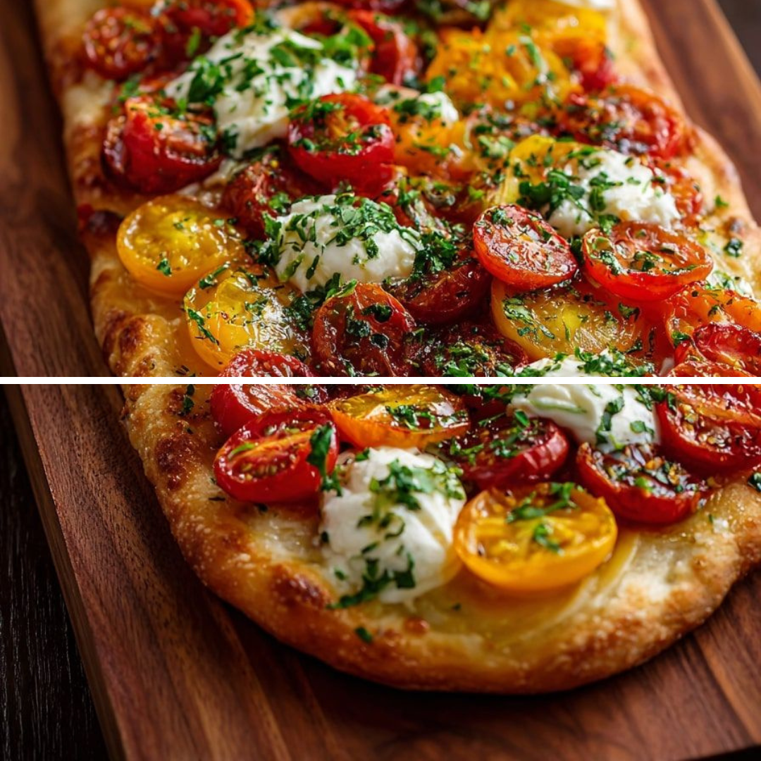 3️⃣Kend a paradicsomokat a lepénykenyérre, és süsd 8-10 percig , vagy amíg ropogós nem lesz.