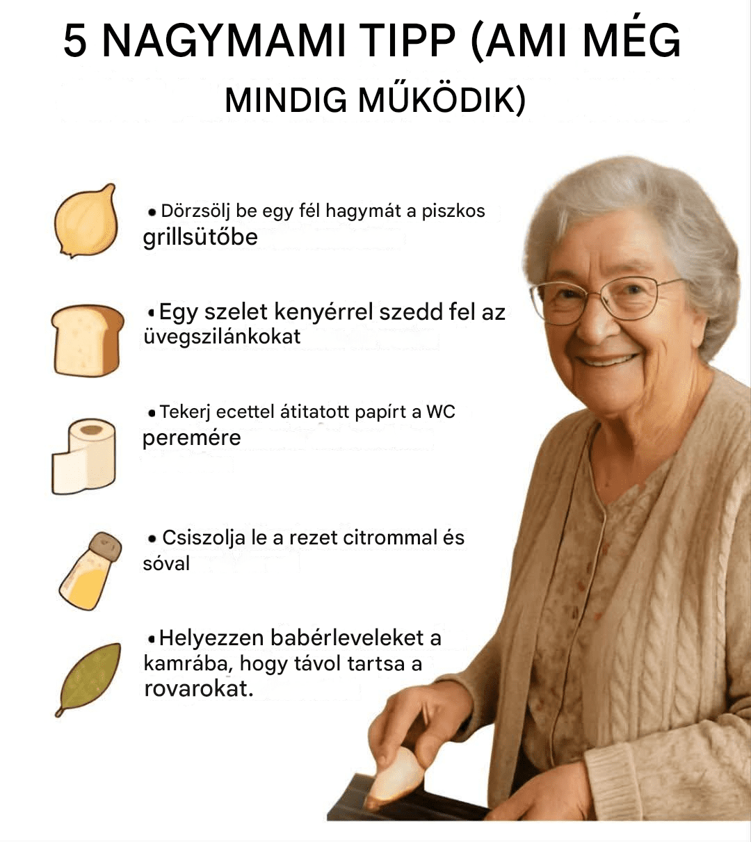 Régimódi tippeket keresel, amelyek megkönnyítik az életedet? Egyszerű, természetes és olcsó trükköket, amelyeket csak az idősebb generáció ismer? Gyerekkoromban egész nap néztem, ahogy a nagymamám olyan dolgokat csinál, amelyek mintha egy másik korból származnának. De tudod mit? Akár főzéshez, akár takarításhoz van szükség, az apró tippjei a mai napig tökéletesen működnek. Sőt, én magam is használom őket a mai napig, mert annyira hatékonyak. Fedezd fel a legjobb praktikus és gazdaságos nagymama tippeket, amelyek valóban működnek.