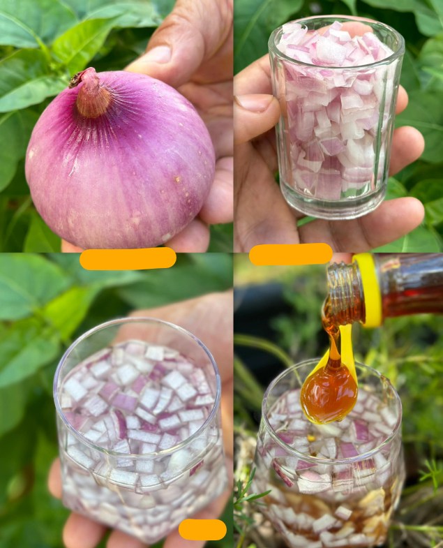 Vegyél egy fél vöröshagymát, és vágd apró darabokra. Tedd a darabokat egy tiszta edénybe, ahogy a képen látható.