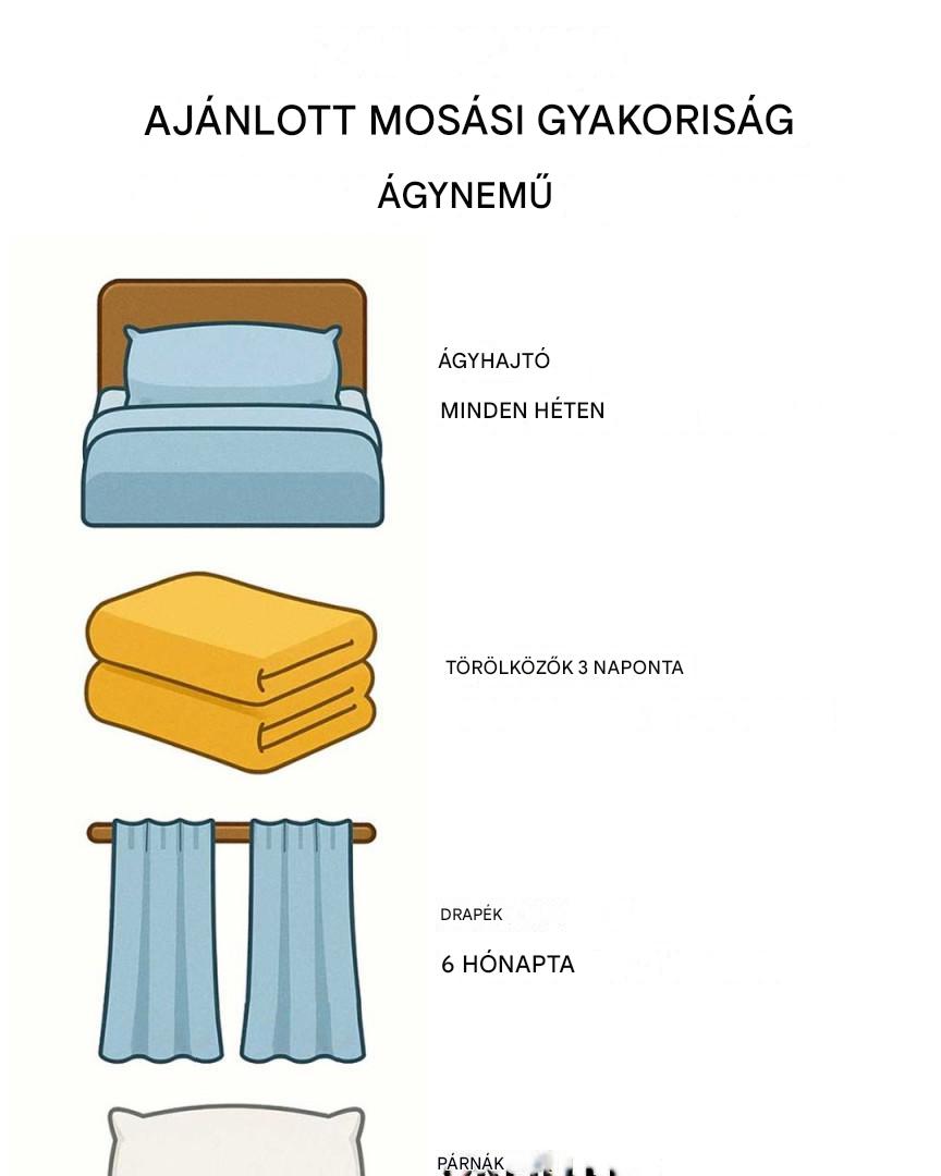 Az ágyneműnk nem csupán az álmaink otthona! Éjszakánként rákerül a verejték, az elhalt hámsejtek és a faggyú, melyek ideális közeget teremtenek az atkáknak és allergéneknek. Az alapos higiénia és a zavartalan pihenés érdekében érdemes hetente legalább egyszer 60 °C-on mosni az ágyneműt. Egyszerű, mégis hatékony megoldás.