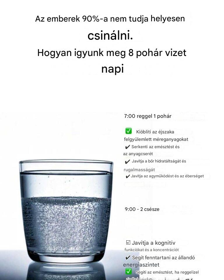 Az úgynevezett „8 pohár víz naponta” szabály egy egyszerű irányelv, amely napi körülbelül 2 liter víz fogyasztását javasolja – ez nyolc darab 2,5 deciliteres pohárnak felel meg. Ez az ajánlás általános irányvonalat ad, de az egyéni szükségletek ettől eltérhetnek életkor, nem, fizikai aktivitás vagy éghajlat függvényében. A legfontosabb, hogy figyeljünk testünk jelzéseire, és szükség szerint módosítsuk a vízfogyasztást.