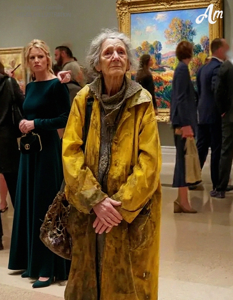 Közelebb mentem, és jobban megnéztem. A tekintete nem volt olyan unalmas, mint ahogy mások gondolták. Ragyogó volt, még a ráncok és a fáradtság mögött is. Megállt egy kis impresszionista festmény előtt, amely egy virágzó cseresznyefa alatt ülő nőt ábrázolt, és kissé megdöntötte a fejét, mintha megpróbálna valamire visszaemlékezni.