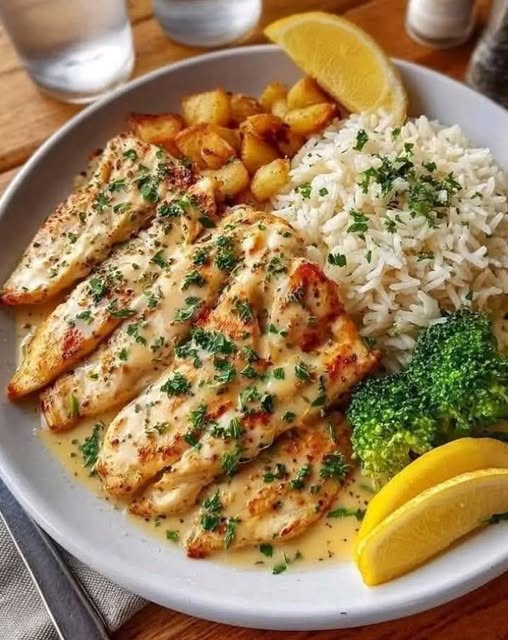 Citromos-tejszínes csirke, sült krumpli