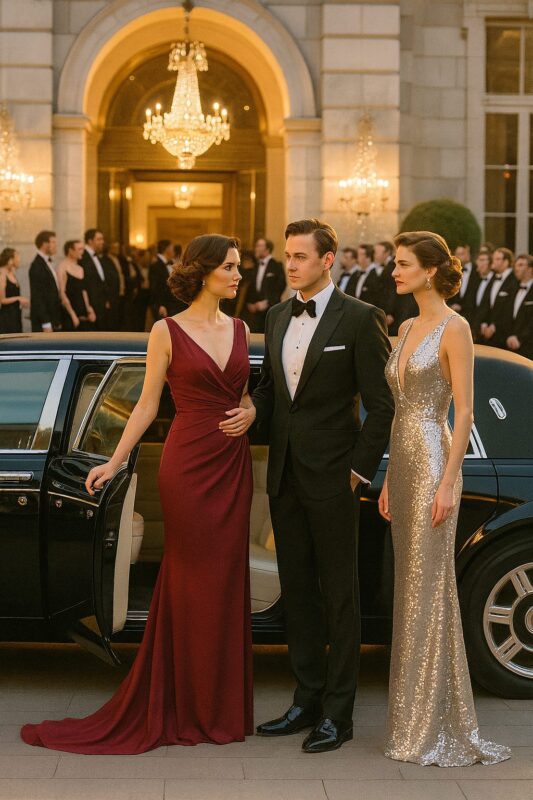 A keze egy tökéletesen szabott szmokingot viselő férfi karján pihent, akinek tartása és csendes magabiztossága szó szerint gazdagságot és hatalmat sugárzott.