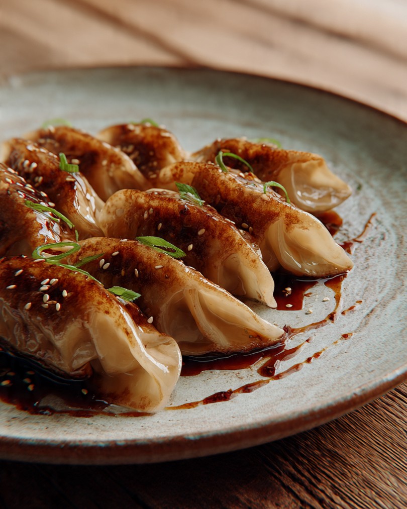 Ezek a ketjap szószban készült gyozák különböző textúrákat és ízeket ötvöznek egyetlen fogásban: ropogós tésztát, szaftos tölteléket és egy olyan szószt, ami egyszerre édes és sós. Ez egy könnyen hozzáférhető recept luxus megjelenéssel, ideális egy professzionális gasztronómiai weboldal számára, és széles közönség számára vonzó.