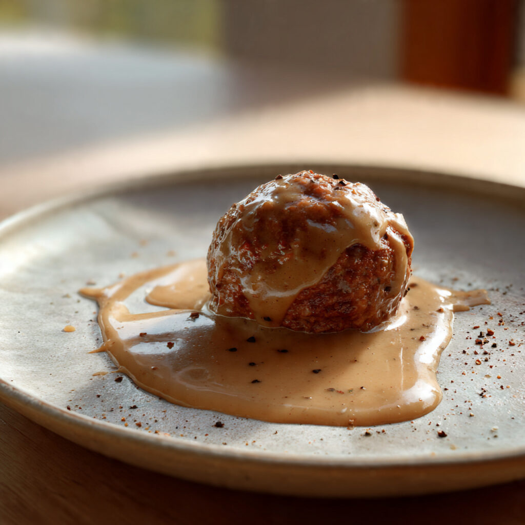 Ennek a receptnek az ereje az egyszerűségében rejlik. Nincsenek tasakok, mesterséges ízfokozók, csak tiszta hús, fűszerek és egy klasszikus, a főzőzsírból készült mártás. Az eredmény pontosan az, amit a képen látsz: egy fényes, gazdag mártás és egy szánkban elolvadó húsgombóc.