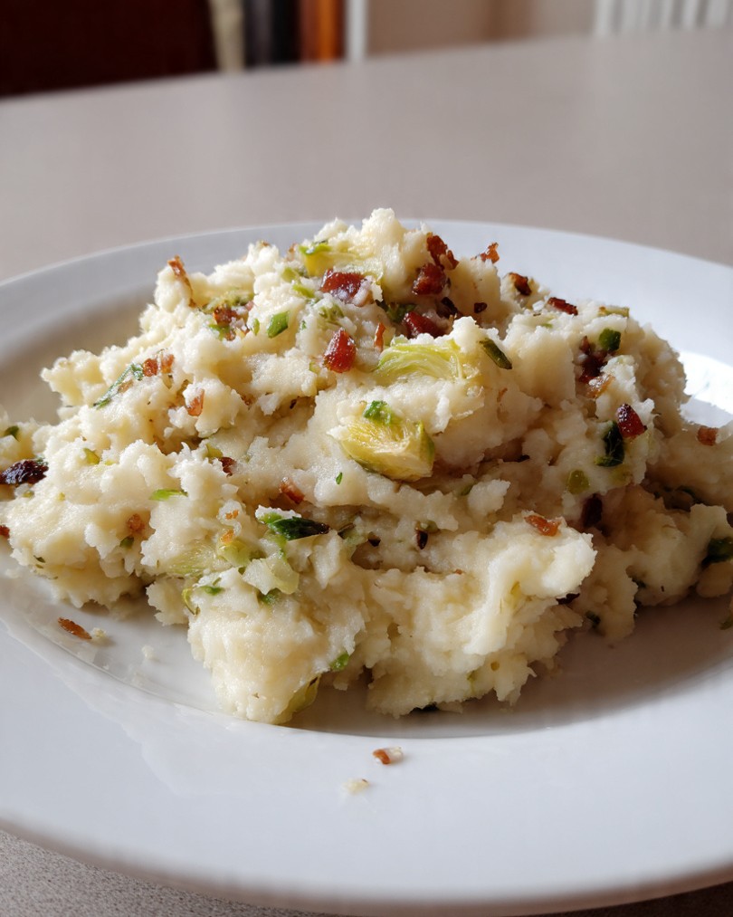 A burgonya puha alapot alkot, míg a kelbimbó könnyed harapást és friss zöldségízt kölcsönöz az ételnek. A szalonna sós és mély ízt ad, tökéletes egyensúlyt teremtve. Ez a burgonyapüré olyan, amilyennek lennie kell: kiadós, melegítő és megbízható.