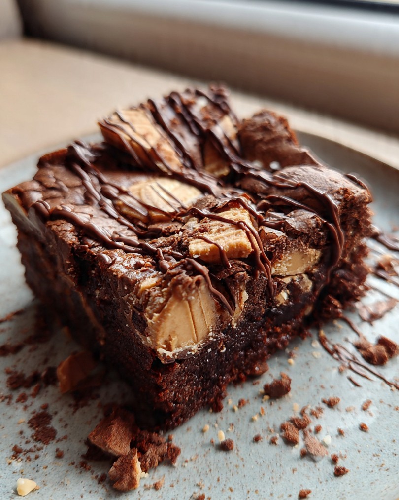 Ez a Kinder Bueno brownie igazi közönségkedvenc azok számára, akik szeretik a gazdag csokoládés desszerteket. A képen egy kemény, puha brownie látható, nagy Kinder Bueno darabokkal, amelyek sütés közben lassan olvadnak el, krémes tölteléket hagyva maguk után. A tetejét egy vékony réteg olvasztott csokoládéval vonják be, ami mélységet ad az íznek és a megjelenésnek. Ez az a fajta brownie, amilyet egy elegáns kávézóban várnánk, de meglepően könnyű elkészíteni magad is.