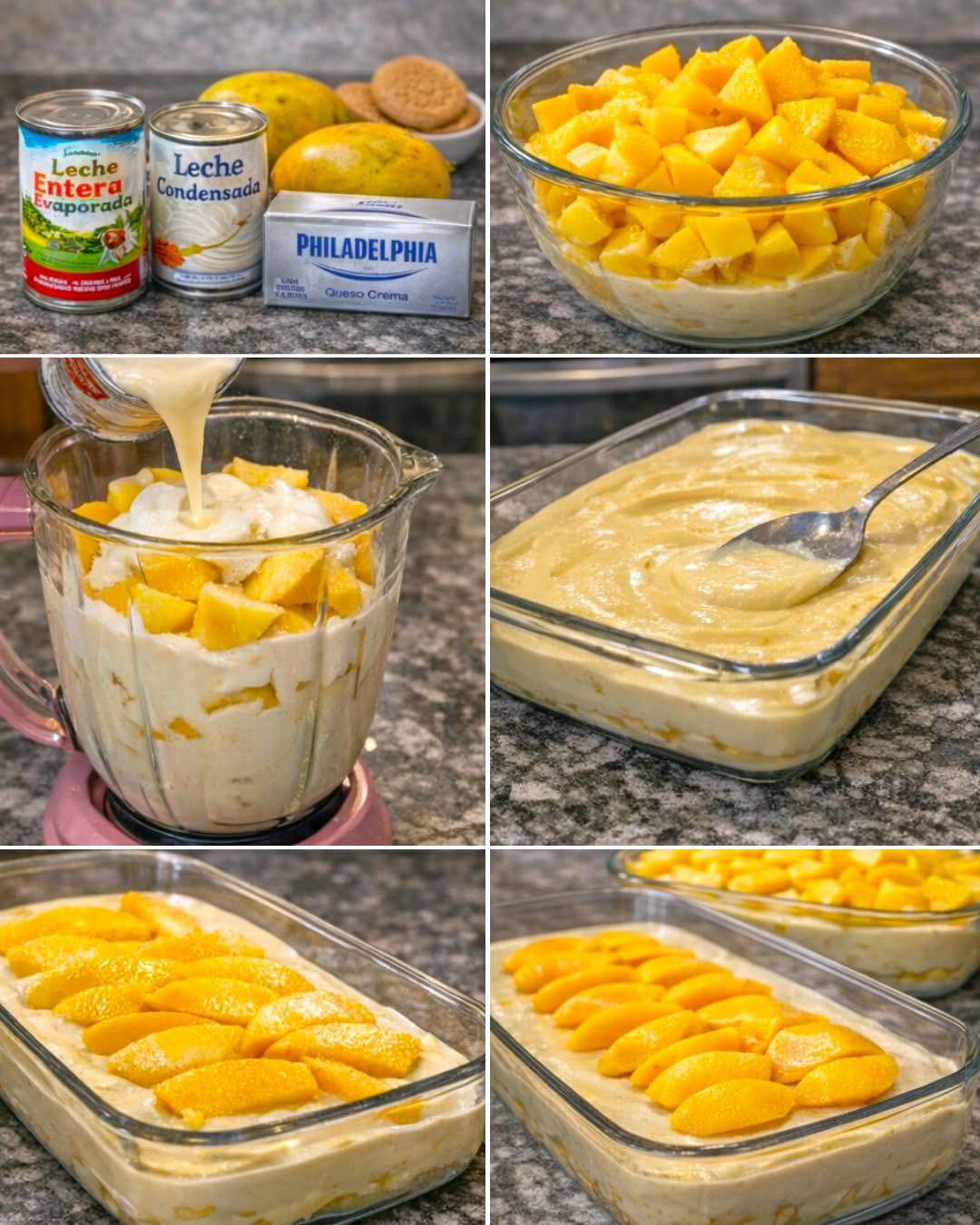Nyár egy kanálban! Ez a sütés nélküli, krémes mangós desszert friss, könnyű és ellenállhatatlanul gyümölcsös. Tökéletes egy étkezés édes befejezéséhez vagy egy forró napokon való hűsöléshez. Sima állaga és édes-savanykás íze fiataloknak és időseknek egyaránt vonzó, és pillanatok alatt elkészül.