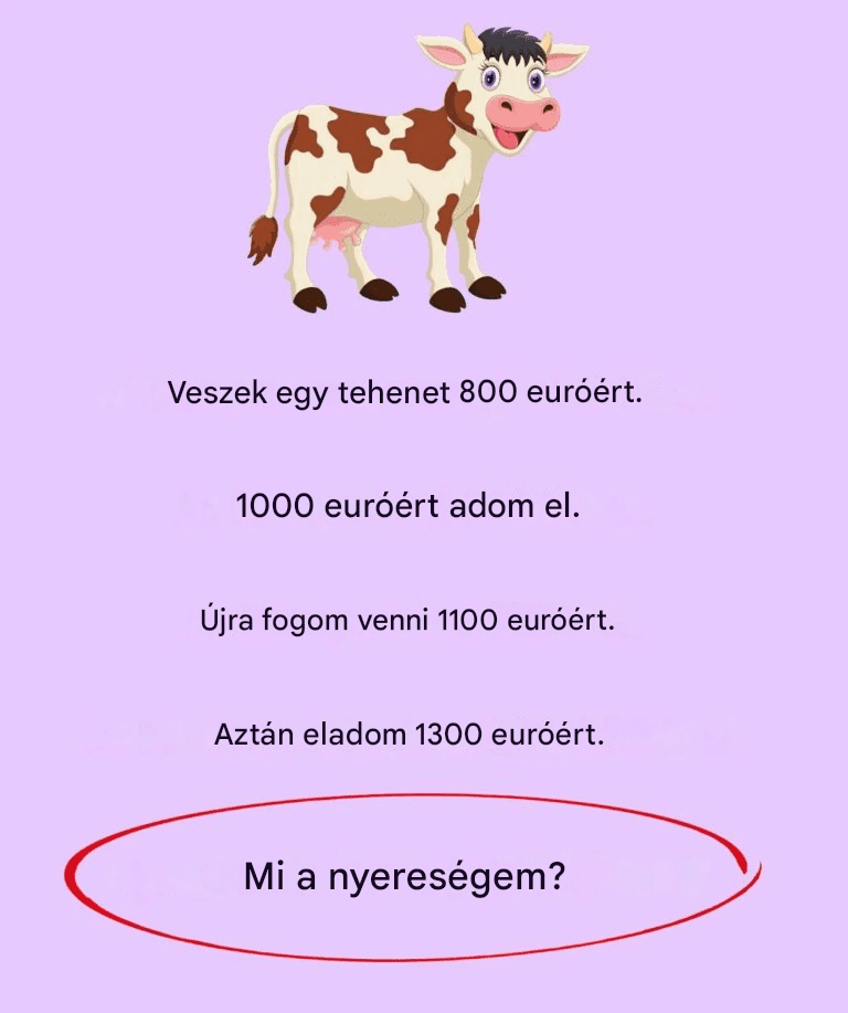 Láttad már ezt a rejtvényt: egy tehén gazdát cserél, pénzösszegek összeadódnak és kivonnak... és végül összezavarodik az agyad. Azt hiszed, tudod a megoldást, aztán egy részlet kétségeket ébreszt. Mi lenne, ha ahelyett, hogy az intuíciódra bíznál, egy valóban megbízható módszert alkalmaznál? Spoiler: nem kell matematikusnak lenned, csak rakd sorba a lépéseket, ahogy a szupermarketben szoktad a termékeket...