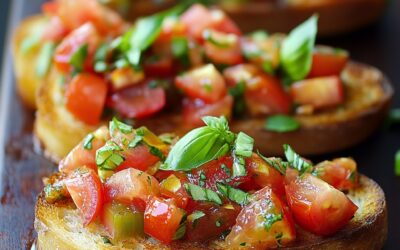 Hozzávalók:szelet parasztkenyér,3 érett paradicsom, 1 gerezd fokhagyma,néhány bazsalikomlevél, olívaolaj
