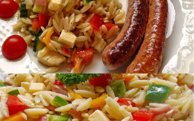 Hozzávalók 500 g tészta, görög (Kritharaki) 200 g sajt, Gouda sajt 200 g főtt sonka 1 kaliforniai paprika, sárga 1…