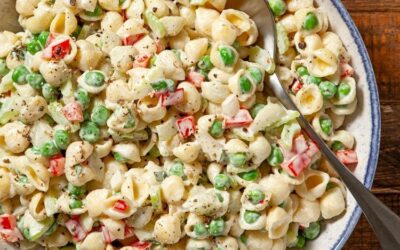 Hozzávalók 8 uncia főzetlen kis tésztahéj 2 csésze fagyasztott borsó 1 csésze vékonyra szeletelt zeller 1/2 csésze apróra vágott édes…