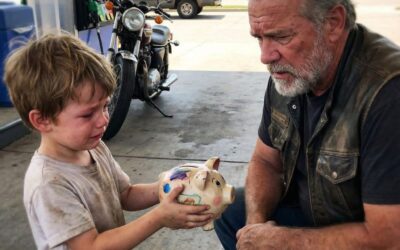A kisfiú felajánlotta a malacperselyt a motorosnak a benzinkútnál, és hat szót mondott, amitől végigfutott a hideg: „Kérlek, Apu, hagyd…
