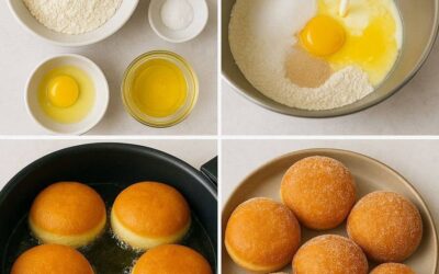 Leírás: Ezek a finom vaníliakrémes fánkok puha, sült fánkok, bőségesen töltve sima vaníliakrémmel. Édesek és krémesek, tökéletesek reggelire vagy édes…