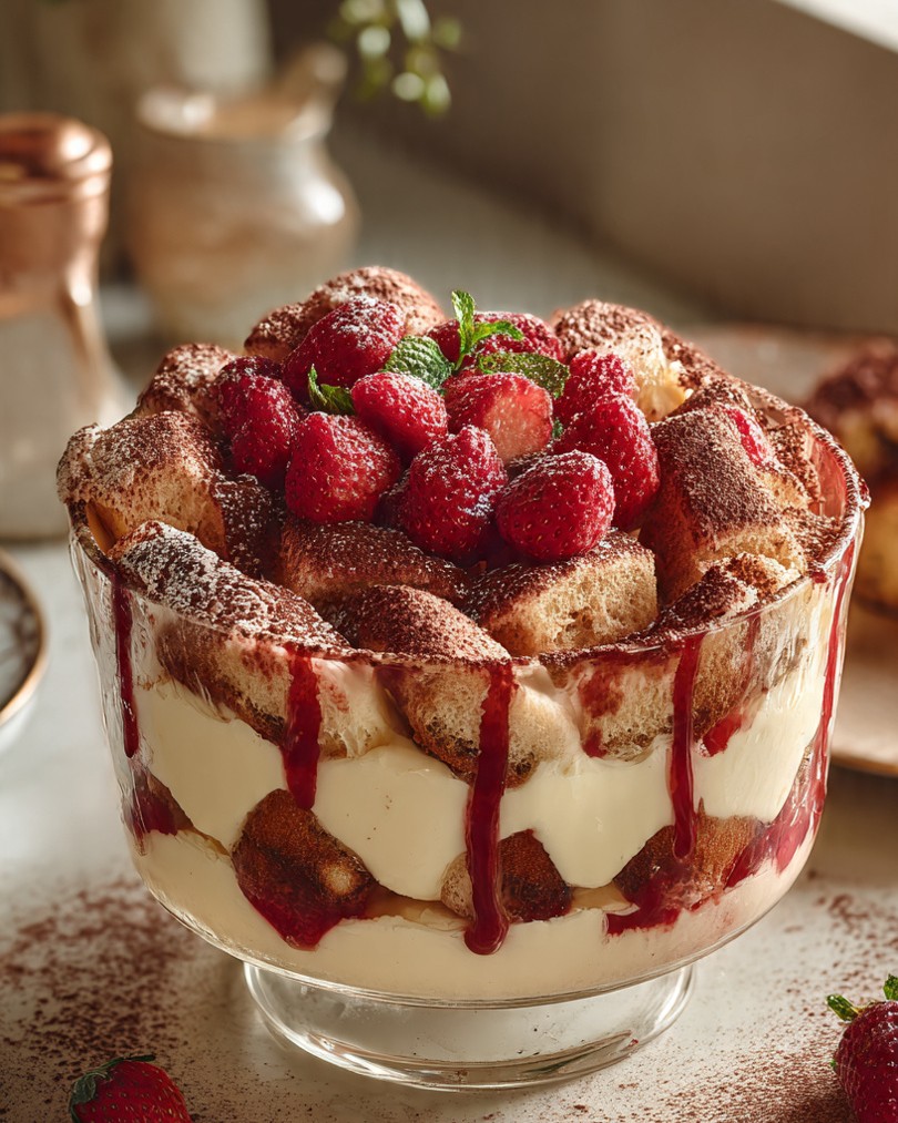 Pezsgős tiramisu piros gyümölcsökkel – Luxus desszert ünnepi stílusban