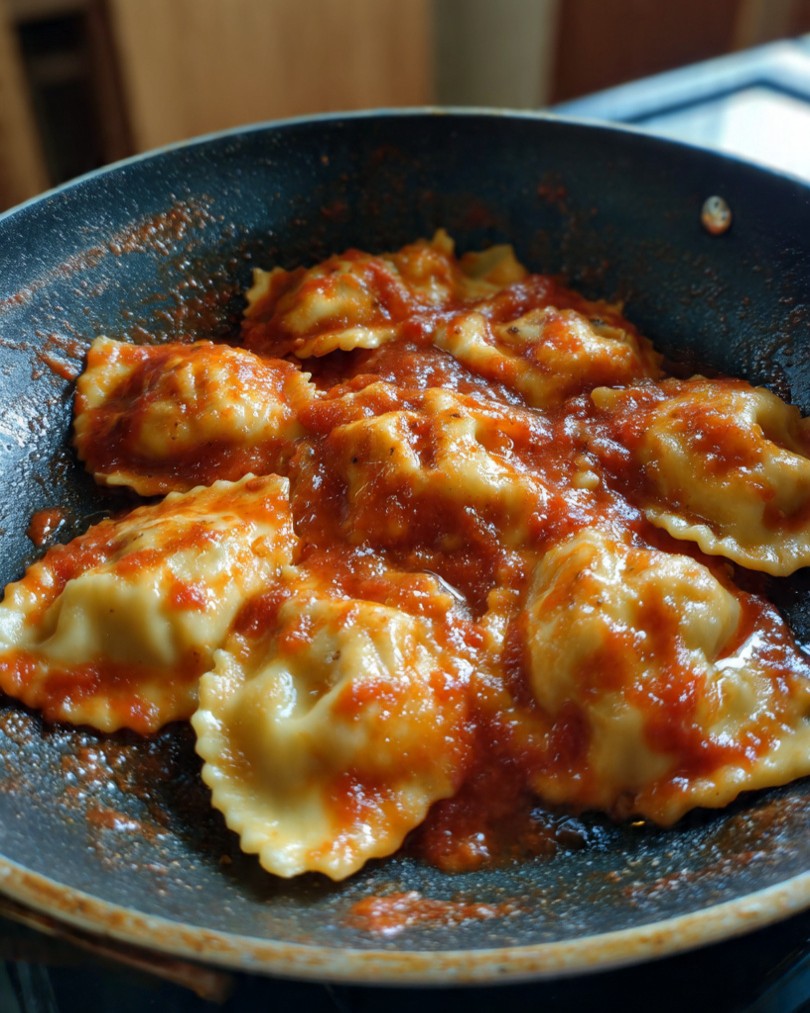 Ravioli paradicsomszósszal serpenyőben