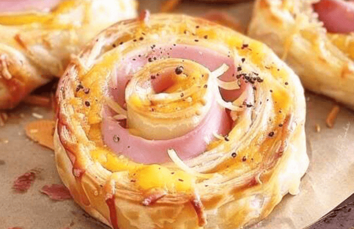 Sonkás-sajtos leveles tésztából készült csigák (4 hozzávaló)