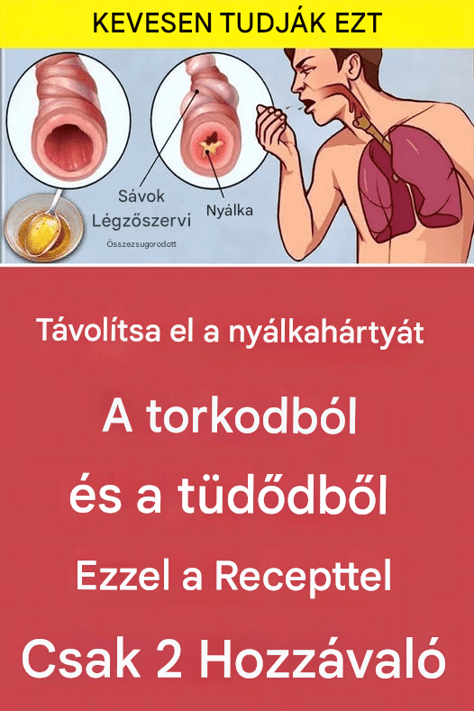 A torokban és a tüdőben lévő nyálka nagyon kellemetlen lehet, köhögést, orrdugulást és légzési nehézséget okozhat. Szerencsére van egy egyszerű és hatékony természetes megoldás a gyors eltávolítására. Mindössze két hozzávalóval ez a házi készítésű recept segít kitisztítani a légutakat és helyreállítani a könnyű légzést.