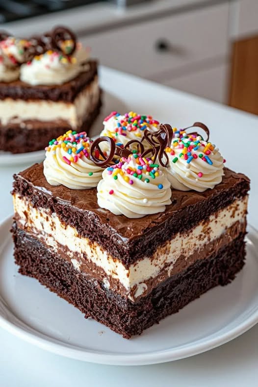 Ez a sütemény a csokoládés brownie gazdagságát ötvözi a vanília édességével, így vizuálisan ünnepi és ellenállhatatlan desszertet alkot. Puha, ínycsiklandó és bármilyen alkalomra tökéletes, kicsiknek és nagyoknak egyaránt el fogja kápráztatni.